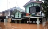 Suasana rumah warga yang terendam banjir di Perumahan Bumi Nasio Indah, Bekasi, Jawa Barat, Selasa (25/2). (FOTO : Republika/Prayogi)