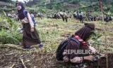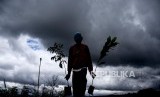 Warga berjalan membawa tanaman saat Gerakan Bulan Menanam 2020 di Kawasan Bandung Utara (KBU), Desa Mekar Saluyu, Kecamatan Cimenyan, Kabupaten Bandung, Selasa (25/2). (FOTO : Republika/Abdan Syakura)