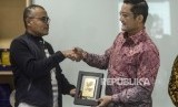 REPUBLIKA.CO.ID, JAKARTA -- Menteri Sosial Juliari P. Batubara (kedua kiri) memberikan paparan saat berkunjung ke Kantor Republika, Jakarta, Selasa (25/2). Kunjungan itu sebagai ajang silaturahim dan diskusi bersama Republika.
