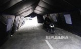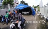Pengendara sepeda motor menerobos tenda pengungsi di Jl Karet H Abdul Jalil, Karet Tengsin, Jakarta, Rabu (26/2). (FOTO : Yogi Ardhi/Republika)
