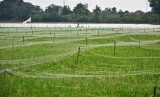 Petani memasang jaring pengahalau burung pemakan padi di lahan pertanian Jati, Kudus, Jawa Tengah, Rabu (26/2/2020). (FOTO : ANTARA FOTO)