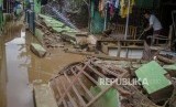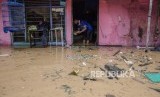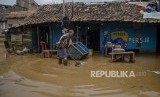 Warga membersihkan rumah yang rusak akibat terendam banjir di Rancaekek, Kabupaten Bandung, Jawa Barat, Sabtu (29/2/2020). (FOTO : Antara/Novrian Arbi)