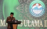 Wakil Ketua Umum MUI Muhyiddin Junaidi memberikan sambutan pada penutupan Kongres Umat Islam Indonesia (KUII) VII di Pangkal Pinang, Bangka Belitung, Jumat (28/2). (FOTO : Republika/Putra M. Akbar)