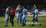 Pemain Persib dan Persela bersitegang pada laga antara Persib Bandung melawan Persela Lamongang, di Stadion Jalak Harupat, Bandung, Ahad (1/3). (FOTO : Abdan Syakura)