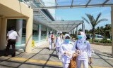 REPUBLIKA.CO.ID, JAKARTA -- Pekerja rumah sakit menggunakan masker di RSPI Sulianti Saroso, Jakarta, Senin (2/3/2020).