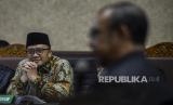 Terdakwa kasus dugaan suap terkait pengurusan proposal dana hibah Komite Olahraga Nasional Indonesia ( KONI) dan gratifikasi, Imam Nahrawi saat menjalani sidang di Pengadilan Tipikor, Jakarta, Rabu (4/3). (FOTO : Republika/Putra M. Akbar)