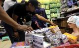 Calon pembeli memilih masker di Pasar Pramuka, Matraman, Jakarta, Senin (2/3). (FOTO : Republika/Prayogi)