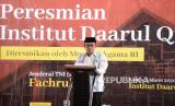 Menag Fachrul Razi meberikan sambutan saat peresmian Institut Daarul Quran di Tangeran, Banten, Kamis (5/3). (FOTO : Republika/Prayogi)