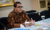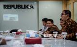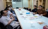 Humas Ikatan Dai Indonesia (Ikadi) Gena Bijaksana (kanan) bersama jajaran anggota berkunjung ke kantor Republika, Jakarta, Kamis (5/3). (FOTO : Republika/Thoudy Badai)