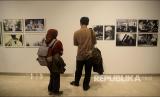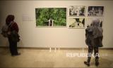 Pengunjung mengamati karya foto yang ditampilkan dalam Pameran Foto Innovation di Erasmus Huis, Jakarta, Kamis (5/3). Pameran foto karya 10 pewarta foto penerima Permata Photojournalist Grant (PPG) 2019 itu berlangsung hingga 5 April. (FOTO : Prayogi/Republika)