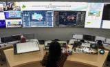 Staff command center bertugas di Pusat Informasi dan Koordinasi Covid-19 Jawa Barat (PIKOBAR) di Command Center Gedung B Gedung Sate, Jalan Diponegoro, Kota Bandung, Kamis (5/3).  (FOTO : Republika/Abdan Syakura)