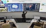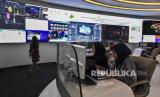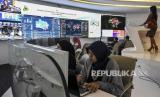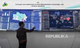 Staff command center bertugas di Pusat Informasi dan Koordinasi Covid-19 Jawa Barat (PIKOBAR) di Command Center Gedung B Gedung Sate, Jalan Diponegoro, Kota Bandung, Kamis (5/3). (FOTO : Republika/Abdan Syakura)