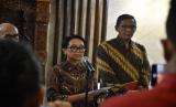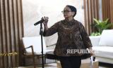 Menteri Luar Negeri Retno LP Marsudi bersiap memberikan pernyataan pers terkait larangan masuk sementara bagi warga negara asing ke Indonesia di Kantor Kementerian Luar Negeri Jakarta, Kamis (5/3/2020). (FOTO : Antara/Wahyu Putro A.)