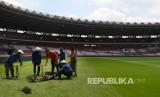 Ketua Umum Persatuan Sepak Bola Seluruh Indonesia (PSSI) Mochamad Iriawan (ketiga kiri) didampingi Manajer Pengelola Kawasan Olahraga GBK Muliani (kanan) meninjau perawatan rumput Stadion Utama Gelora Bung Karno (SUGBK) di Senayan, Jakarta, Jumat (6/3/2020). (FOTO : Antara/Puspa Perwitasari)