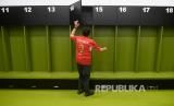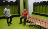 Ketua Umum Persatuan Sepak Bola Seluruh Indonesia (PSSI) Mochamad Iriawan meninjau fasilitas ruang ganti pemain di Stadion Utama Gelora Bung Karno (SUGBK) Senayan, Jakarta, Jumat (6/3/2020). (FOTO : Antara/Puspa Perwitasari)