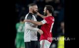 Wayne Rooney (kiri) dan Juan Mata (kanan) berpelukan usai laga antara Derby County dan Manchester United di Pride Park, Derby, Inggris, Jumat (5/3) dini hari. (FOTO : Peter Powell/EPA EFE)