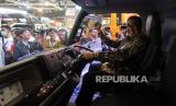 Director of Sales and Marketing Division PT Krama Yudha Tiga Berlian Motors (KTB) Duljatmono berpose di dalam truk elektri eCanter pada ajang GAIKINDO Indonesia International Commercial Vehicle (GIICOMVEC) di JCC Jakarta, Kamis (5/3).(Republika/Darmawan) (FOTO : Republika/Darmawan)
