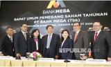 Direktur Utama Kostaman Thayib (tengah) didampingi jajaran direksi pada acara RUPS Tahunan PT Bank Mega Tbk di Jakarta, Jumat (6/3). Salah satu keputusan rapat menyetujui pembagian Dividen Tunai kepada pemegang saham sebesar Rp1 triliun lebih. Selain itu rapat juga menyetujui jumlah yang sama untuk dibukukan sebagai saldo laba. (FOTO : Dok Bank Mega)