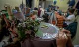 Pekerja menyelesaikan produksi pakaian rajut di Sentra Rajut Binong Jati, Bandung, Jawa Barat, Jumat (6/3/2020). (FOTO : Antara/Raisan Al Farisi)