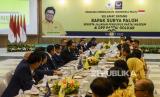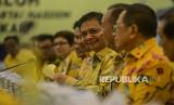 Suasana pertemuan antara Ketua Umum Partai Golkar Airlangga Hartarto dengan Ketua Umum Partai NasDem Surya Paloh di DPP Partai Golkar, Slipi, Jakarta, Senin (9/3). (FOTO : Republika/Putra M. Akbar)