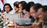 Menteri Keuangan Sri Mulyani (kiri) berbincang dengan Menteri PPN/Kepala Bappenas Suharso Monoarfa (kedua kiri) sebelum mengikuti rapat terbatas (ratas) di Kantor Presiden, Jakarta, Senin (9/3/2020). (FOTO : Antara/Hafidz Mubarak A)