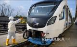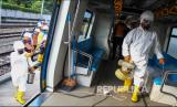 REPUBLIKA.CO.ID, PALEMBANG -- Petugas menyemprotkan cairan disinfektan di gerbong kereta di Depo Light Rail Transit (LRT) Sumatera Selatan, Palembang, Selasa (10/3/2020).