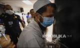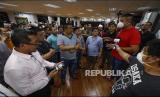 Walikota San Juan berbicara dengan jamaah masjid menyusul ditemukannya kasus Covid-19 pada salah seorang jamaah masjid Greenhills, San Juan, Metro Manila, Filipina, pekan lalu.(Rolex Dela Pena/EPA-EFE) (FOTO : Rolex Dela Pena/EPA-EFE)