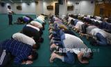 Suasana shalat berjamaah di masjid district Greenhills, San Juan, Metro Manila, Filipina, pekan lalu.(Rolex Dela Pena/EPA-EFE) (FOTO : Rolex Dela Pena/EPA-EFE)