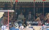Raja Belanda Willem Alexander (kedua kiri) dan Ratu Maxima (kiri) menyaksikan tarian Lawung Ageng bersama Raja Keraton Yogyakarta, Sri Sultan HB X (kanan) saat melakukan kunjungan di Keraton Yogyakarta, Rabu (11/3/2020).(Antara/Andreas Fitri Atmoko) (FOTO : Antara/Andreas Fitri Atmoko)