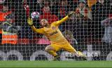 Jan Oblak mengahalau bola di Anfield Stadium, Kamis (12/3). (Phil Noble/Reuters ) (FOTO : Phil Noble/Reuters )