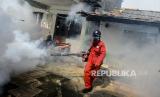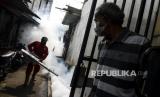 Untuk mengantispasi kondisi ini, Puskesmas Pasar Minggu melakukan pengasapan di Pasar Minggu, Jakarta, Kamis (12/3). Pengasapan dilakukan untuk memberantas keberadaan nyamuk Aedes aegypti karena sudah terdapat dua warga yang terkena penyakit demam berdarah dengue (DBD) di wilayah tersebut.
