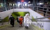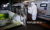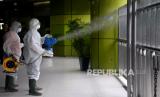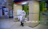 REPUBLIKA.CO.ID, JAKARTA -- Petugas menyemprotkan cairan disinfektan di Stasiun Gambir, Jakarta, Kamis (12/3/2020). Kegiatan penyemprotan disinfektan itu untuk mencegah penularan COVID-19.