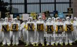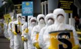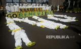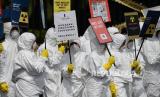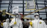 REPUBLIKA.CO.ID, JAKARTA -- Sejumlah aktivis Greenpeace melakukan aksi damai sebagai bagian dari peringatan 9 tahun bencana Fukushima di depan Gedung DPR/MPR, Senayan, Jakarta, Jumat (13/3).