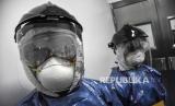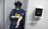Petugas medis berada di area ruang isolasi saat simulasi penanganan pasien virus Corona (Covid-19) di Rumah Sakit Khusus Ibu dan Anak (RSKIA) Kota Bandung, Jalan KH Wahid Hasyim, Kota Bandung, Jumat (13/3).(Republika/Abdan Syakura) (FOTO : Republika/Abdan Syakura)