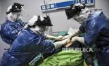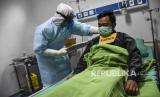 Petugas medis memeriksa pasien saat simulasi penanganan pasien virus Corona (Covid-19) di Rumah Sakit Khusus Ibu dan Anak (RSKIA) Kota Bandung, Jalan KH Wahid Hasyim, Kota Bandung, Jumat (13/3). (Republika/Abdan Syakura) (FOTO : Republika/Abdan Syakura)