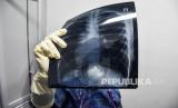 Petugas medis menunjukkan hasil rontgen pasien saat simulasi penanganan pasien virus Corona (Covid-19) di Rumah Sakit Khusus Ibu dan Anak (RSKIA) Kota Bandung, Jalan KH Wahid Hasyim, Kota Bandung, Jumat (13/3). (Republika/Abdan Syakura) (FOTO : Republika/Abdan Syakura)