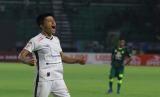 Pesepak bola Persipura Takuya Tatsunaga meluapkan kegembiraannya usai timya menang melawan Persebaya pada pertandingan Liga 1 2020 di Stadion Gelora Bung Tomo, Surabaya, Jawa Timur, Jumat (13/3/2020). Persipura berhasil mengalahkan Persebaya dengan skor 4-3. ANTARA FOTO/Moch Asim/aww.(Moch Asim/ANTARA FOTO) (FOTO : Moch Asim/ANTARA FOTO)