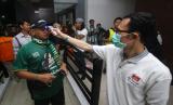 Petugas medis memeriksa tubuh suporter menggunakan (FOTO : Moch Asim/ANTARA FOTO)