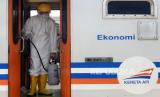 PT KAI Daop 1 Jakarta melakukan pembersihan rangkaian kereta dengan menyemprotkan cairan disinfektan untuk antisipasi dan pencegahan penyebaran virus corona atau COVID-19.