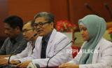 Anggota Komisi XI DPR Indah Kurnia (kanan), Direktur Rumah Sakit Universitas Airlangga (RSUA) Nasronudin (kedua kiri), Ketua Satgas Corona RSUA Prastuti Asta Wulaningrum (kedua kanan) dan Jubir Satgas Corona RSUA Alfian Nur Rosyid (kiri) memberikan keterangan pers di Surabaya, Jawa Timur, Senin (16/3/2020). (Antara/Moch Asim) (FOTO : Antara/Moch Asim)