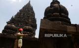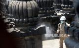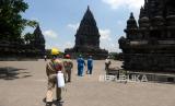 REPUBLIKA.CO.ID, YOGYAKARTA -- Petugas Balai Pelestarian Cagar Budaya (BPCB) DIY menyemprot disinfektan di permukaan Candi Prambanan, Yogyakarta, Selasa (17/3).