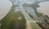 Foto udara sejumlah tambak yang ada di kawasan Mangrove Muaragembong, Kabupaten Bekasi, Jawa Barat.(FAKHRI HERMANSYAH/ANTARA FOTO) (FOTO : FAKHRI HERMANSYAH/ANTARA FOTO)