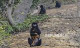 Seekor lutung jawa menggendong anaknya yang bulunya masih berwarna kuning keemasan di lokasi konservasi di kawasan Mangrove Muaragembong, Kabupaten Bekasi, Jawa Barat.(FAKHRI HERMANSYAH/ANTARA FOTO) (FOTO : FAKHRI HERMANSYAH/ANTARA FOTO)