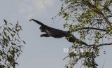 Seekor lutung jawa loncat dari satu pohon ke pohon lainnya saat mencari makan di lokasi konservasi di kawasan Mangrove Muaragembong, Kabupaten Bekasi, Jawa Barat.(FAKHRI HERMANSYAH/ANTARA FOTO) (FOTO : FAKHRI HERMANSYAH/ANTARA FOTO)
