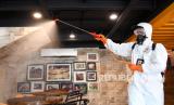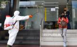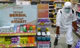 Untuk itu Palang Merah Indonesia (PMI) melakukan penyemprotan cairan disinfektan pada gerai sebagai upaya disinfeksi di pusat perbelanjaan Sarinah, Jakarta Pusat, Selasa (17/3).