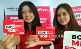 Dua orang model menunjukkan kartu perdana SmartFren 10N+, saat pengenalannya, di Gerai Smartfren, Jakarta, Selasa (17/3/2020). Kartu Perdana ini memiliki masa aktif 365 hari, bonus kuota mingguan hingga 13GB serta manfaat aktivasi 3GB sehingga sangat efektif untuk kegiatan belajar di rumah sebagai antisipasi merebaknya wabah covid-19. (Antara/Audy Alw) (FOTO : Antara/Audy Alw)