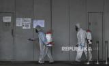 REPUBLIKA.CO.ID, JAKARTA -- Petugas menyemprotkan cairan disinfektan di halaman Gedung KPK Merah Putih di Jakarta, Rabu (18/3/2020). Untuk mencegah penyebaran COVID-19, KPK melakukan disinfeksi di sejumlah area Gedung Merah Putih.