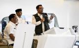 Menteri Dalam Negeri Tito Karnavian (kiri) didampingi Wakil Gubernur Jawa Barat Uu Ruzhanul Ulum (tengah) mendengarkan penjelasan dari Gubernur Jawa Barat Ridwan Kamil (kanan) saat melakukan pertemuan di Pusat Informasi dan Koordinasi Covid-19 Jawa Barat (Pikobar), Kompleks Gedung Sate, Kota Bandung, Rabu (18/3). Pertemuan tersebut membahas konsolidasi penanganan penyebaran virus Corona (Covid-19) di Indonesia. (ABDAN SYAKURA/REPUBLIKA) (FOTO : ABDAN SYAKURA/REPUBLIKA)