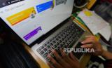 Siswa SMPN 5 Bandung Rakean Ahmad (14) laman Google Classroom untuk mengerjakan tugas sekolah di kediamannya di Bandung, Rabu (18/3). (FOTO : Yogi Ardhi/Republika)