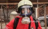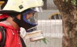 Petugas damkar (pemadam kebakaran) bersiap saat akan melakukan penyemprotan desinvektan di lingkungan RPTRA Nirmala, RW 04, Kelurahan Sunter Jaya, Jakarta, Kamis (19/3). Semakin tingginya tingkat korban virus Covid 19, upaya pencegahan penyebaran virus tersebut kian giat dilakukan di seluruh wilayah Jakarta. .(Republika/Darmawan) (FOTO : Republika/Darmawan)